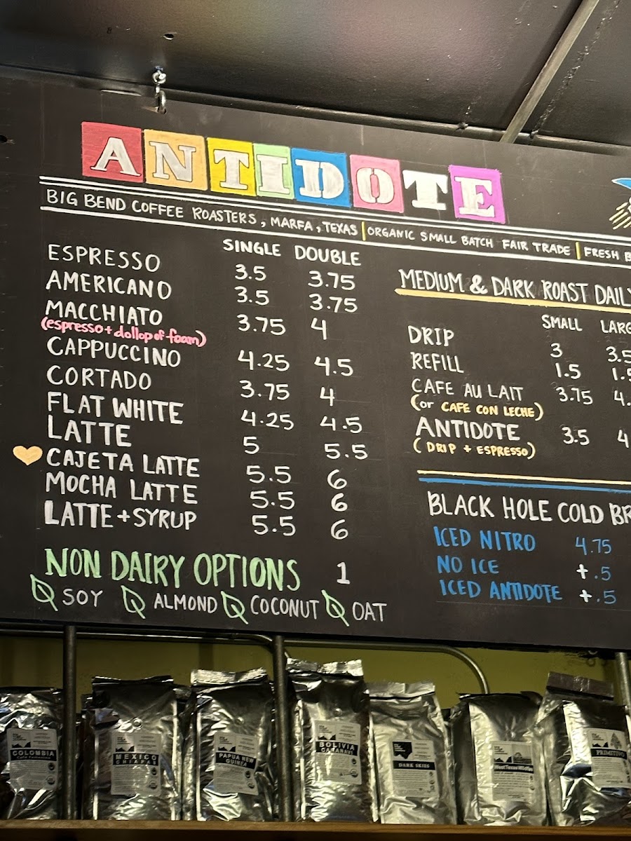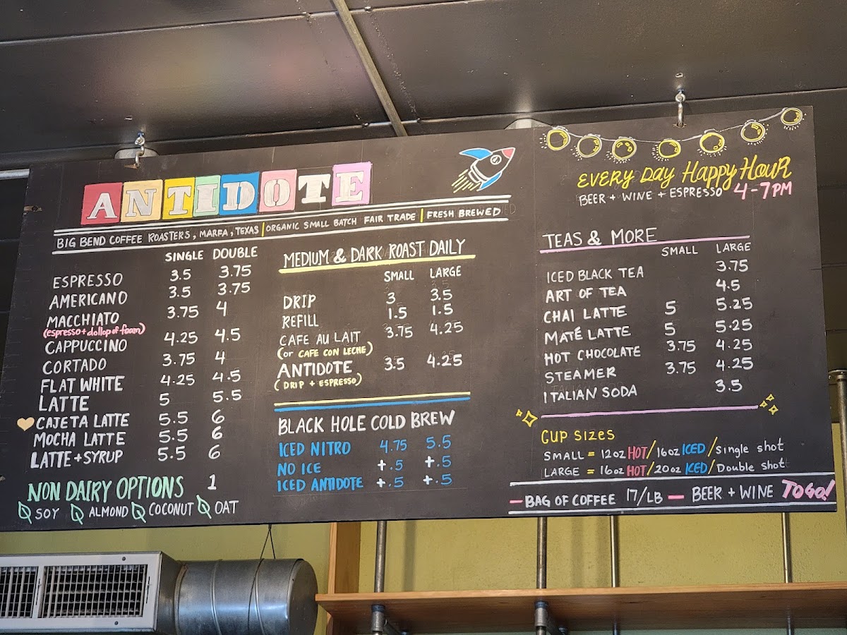 - Coffee Selections: Antidote Coffee offers a variety of expertly crafted beverages. Signature drinks like the iced cajeta latte and hot rose + vanilla latte have garnered rave reviews for their balanced flavors.